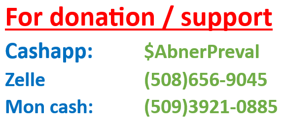 Do you know that you can help Radio Haiti News with $5 - $10. - $50 or more. If you want to do it you can do it with cashapp: $AbnerPreval, Zelle 508-656-9045, Moncash: (509)3921-0885.